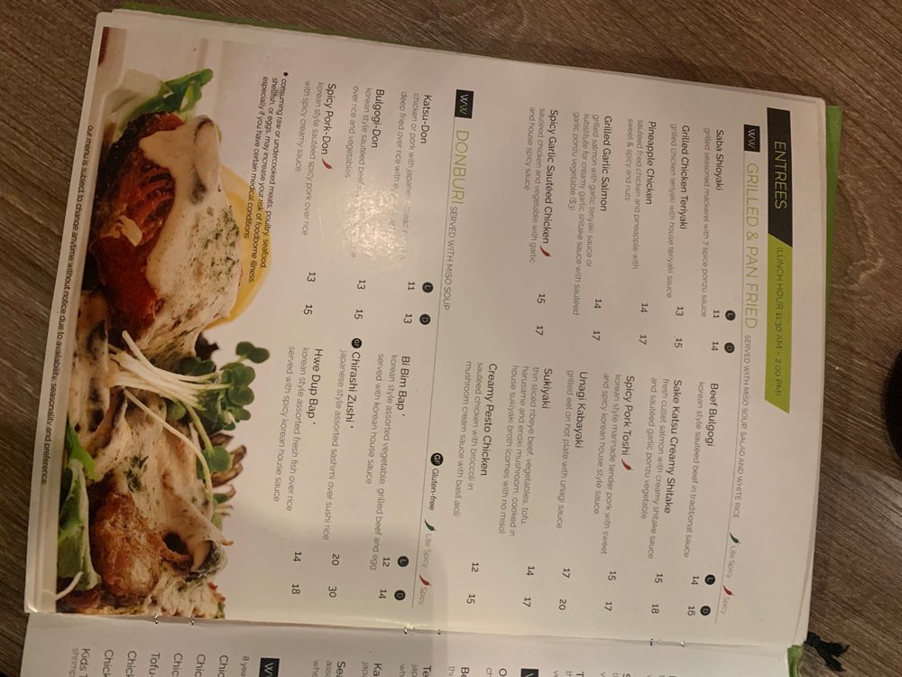 Gluten-free. Korean style assorted fresh fish over rice, served with spicy Korean house sauce. Served with miso soup.