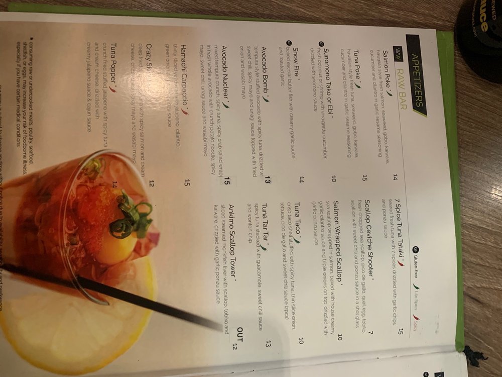 Spicy. Thinly sliced yellowtail or bluefin tuna with jalapeno, cilantro, green onion and ponzu sauce.